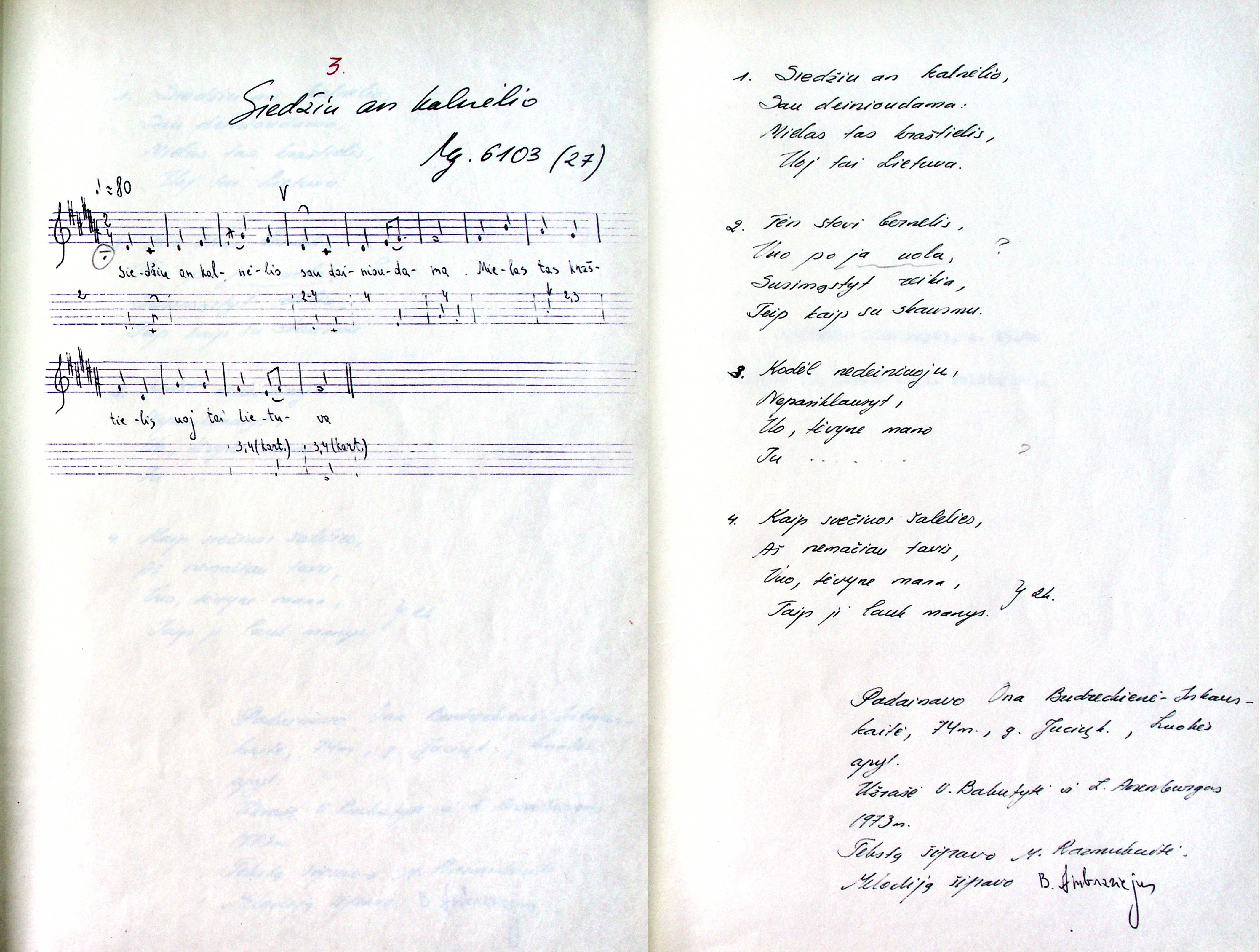 Sėdžiu an kalnelio sau dainuodama